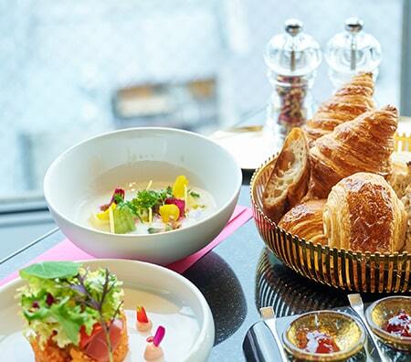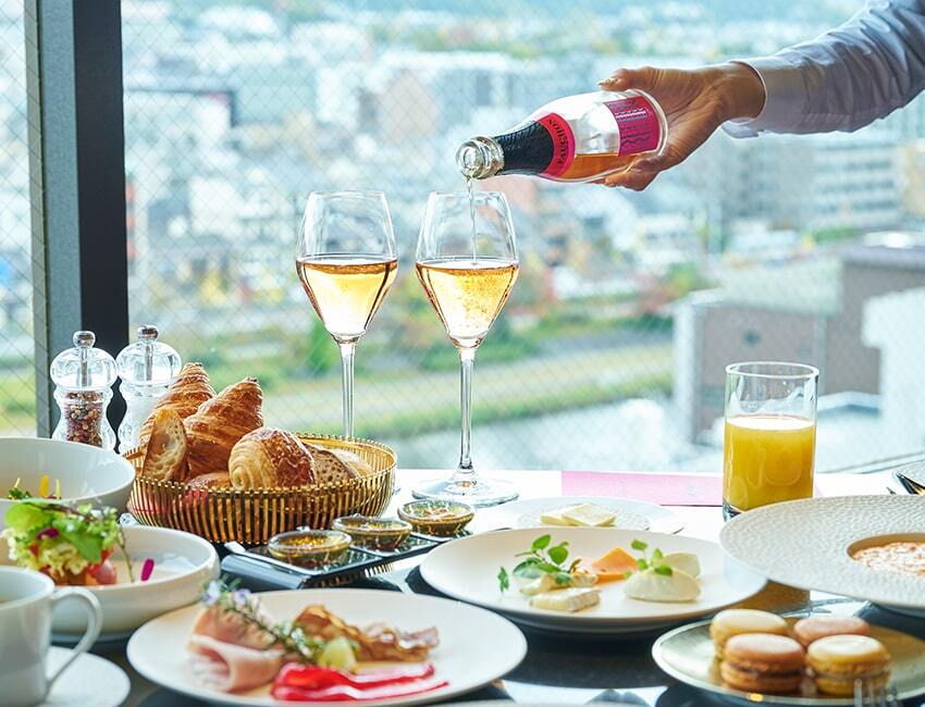 華やかさと繊細さが表現されたコース仕立ての品々には、シェフ自ら大切に育てた朝摘みの無農薬ハーブがあしらわれ、地元京都の食材を中心にグルメホテルの名にふさわしいリッチな味わい。こだわりの卵料理をメインディッシュに、フォションホテル京都ならではの紅茶をたっぷりいただくのはもちろん、日本でここでしか味わえないフォションのロゼシャンパーニュを飲みながら、鴨川や京都の山並みを優雅に眺めて目でも舌でもお姫様気分を!