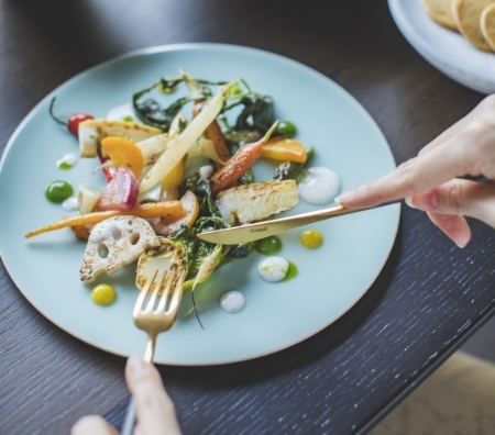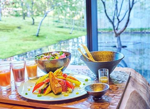 ウェルビーイング朝食は、目覚めたばかりの身体に優しく寄り添う朝食でありたい、その想いから油脂や乳製品をほとんどが不使用。お料理の中でも季節の京野菜をふんだんに使った一皿がおすすめです。旬の野菜の味わいや個性を引き出すために、グリル・スチーム・マリネなど様々な調理法で一品ずつ丁寧に仕上げております。朝の美しい庭と静かな空間、そしてこだわりの器に美しく盛られた食の逸品、何層にも重なる味のマリアージュを楽しんでいただきたいです。